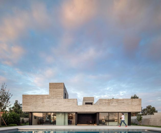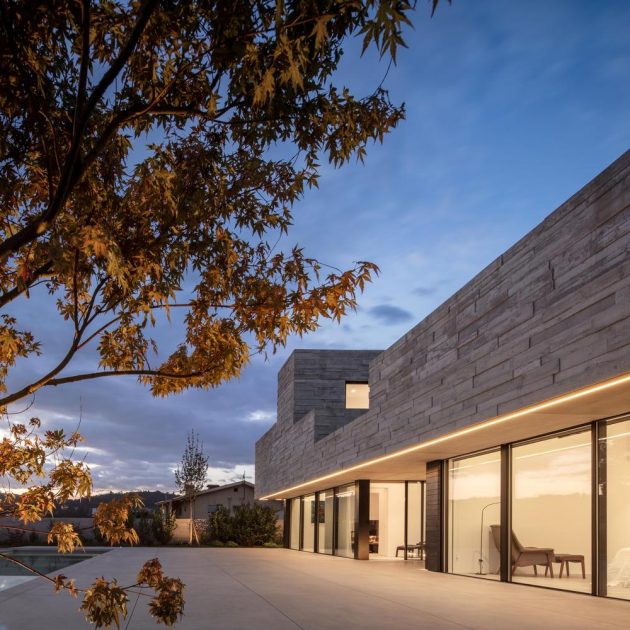 As the time passes the textured concrete will naturally age and will be more integrated in the rural surroundings. The same will happen to the wood base, which the older it gets the more magnificence will become, enriching the house