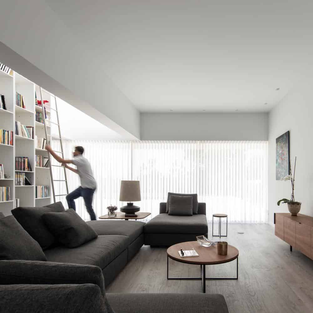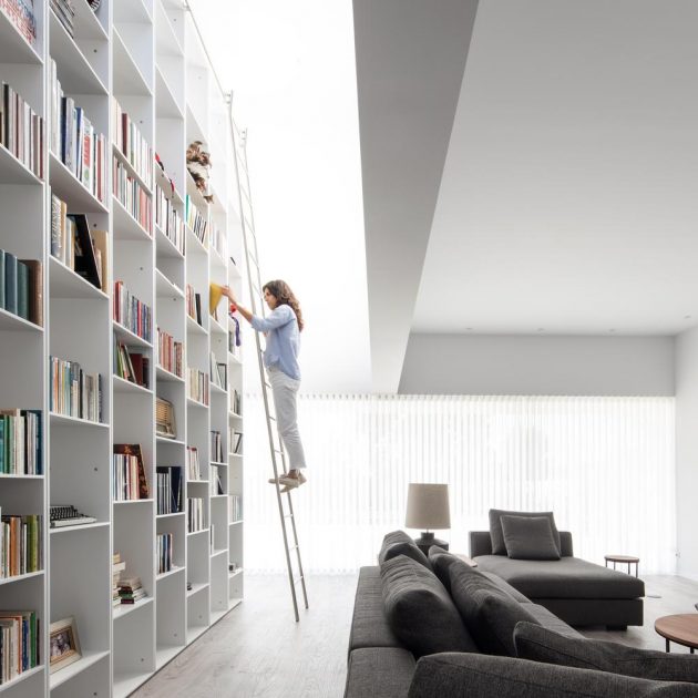 A house for books. This challenge started with a premise from the client: space for many books. Immediately, our imaginary guided us to the many classical renaissance libraries, with sliding stairs that reach the book mountain. That was the motto of the intervention: a high space capable of generate the composition and hierarchize interior spaces.