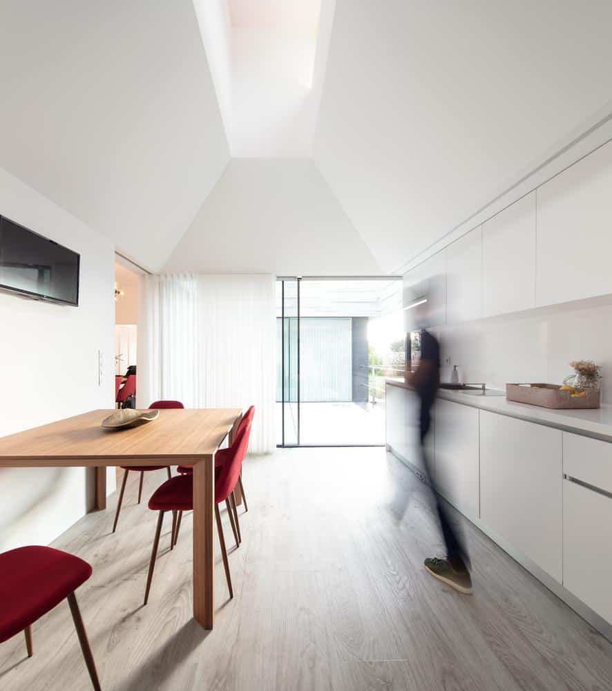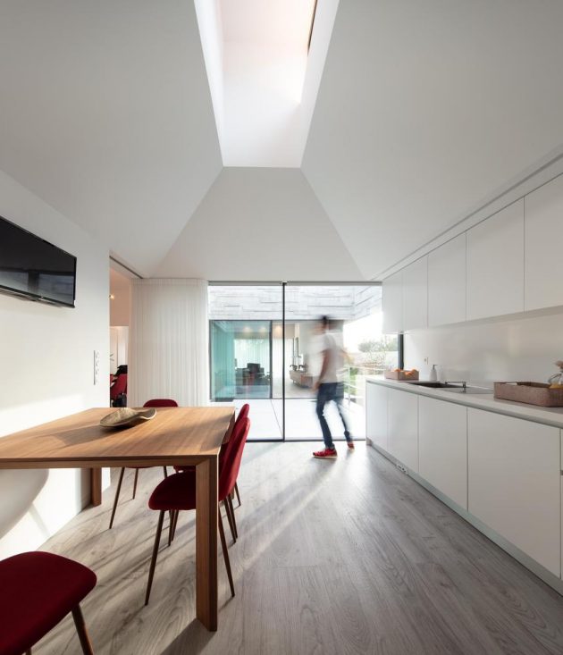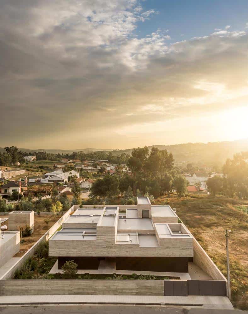 Portuguese studio spaceworkers has completed the design of a new contemporary residence in the municipality of Agrela in Portugal. Similar to the Sambade House project they built in Penafiel, the Agrela House is built from exposed concrete taking on a contemporary cuboid look. On the inside, it has a minimalist styling in a bright color scheme making the most out of the natural light that makes it inside.