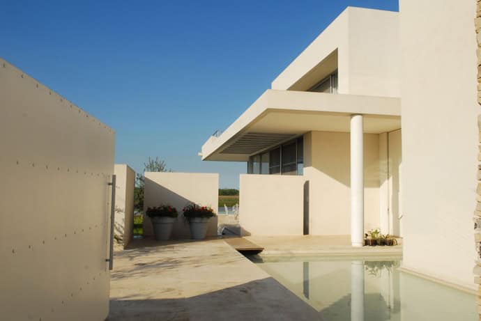 Linear ponds encircle the house, providing reflection, movement, and meditative ambiance.