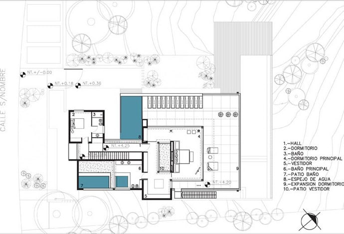 Facing northeast and surrounded by lush landscape, Agua House is designed for a couple seeking spacious, fluid interiors and a strong relationship with the outdoors. The ground floor houses expansive reception areas, made flexible by large sliding wooden doors that retract into the walls, allowing the space to open or close depending on the moment.