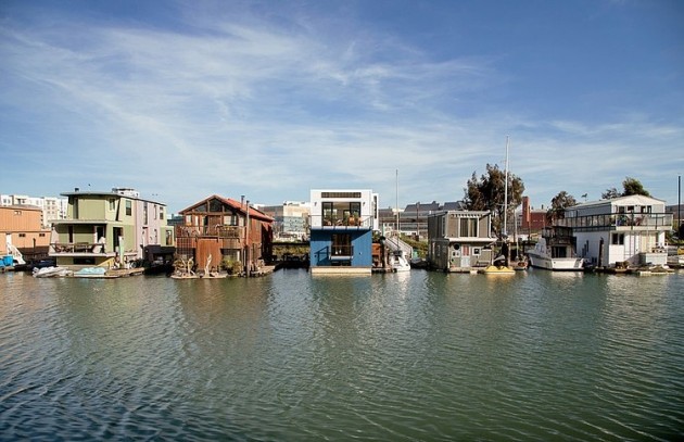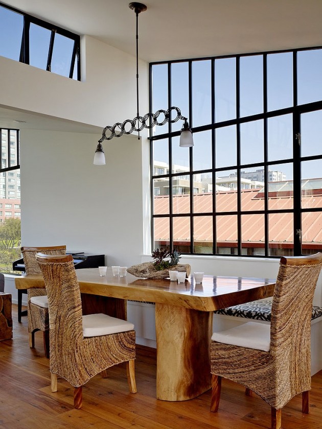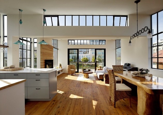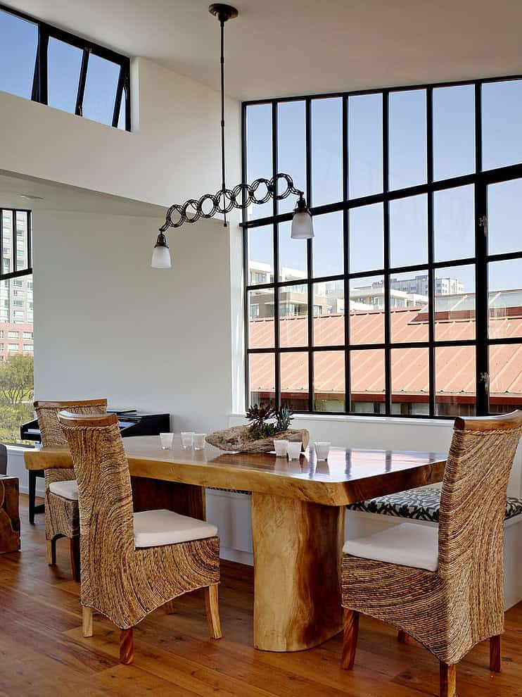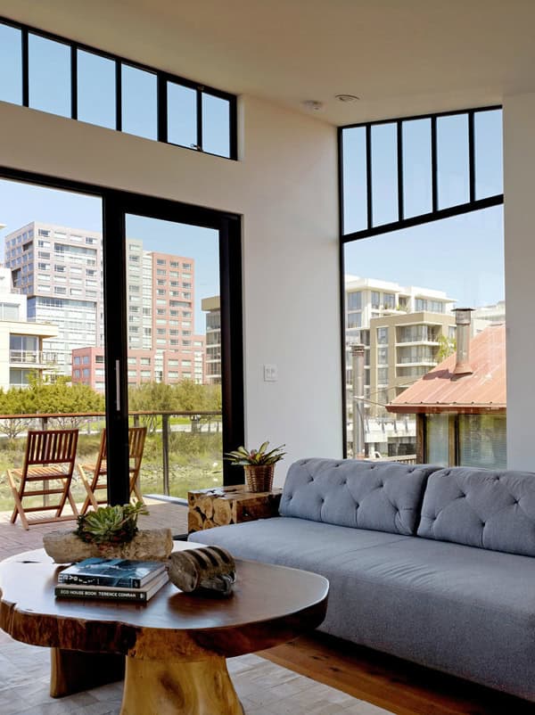 Middle level: The main living and dining area, opening to westward views of Twin Peaks and the westerly San Francisco sky.
