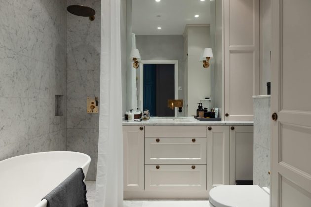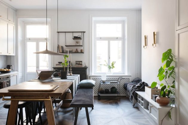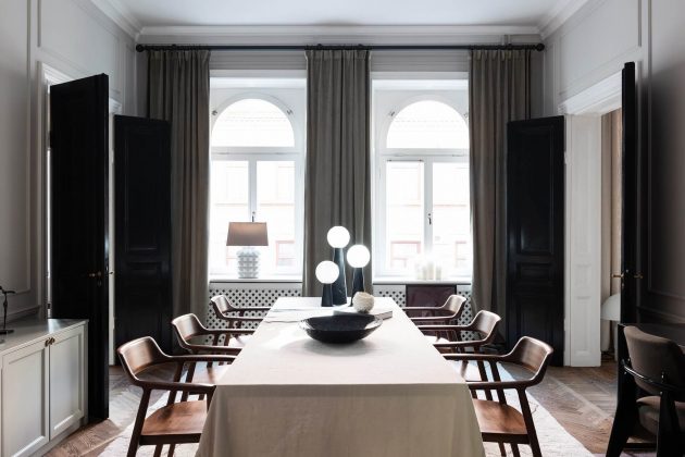 This superb apartment is located in the heart of Stockholm, whose moldings, beautiful high ceilings, and herringbone parquet floors are reminiscent of the Parisian decoration that we love so much.