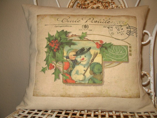 Vintage Snowman Christmas Postcard Throw Pillow