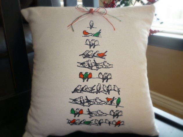 Birds in a Bird Tree Christmas Pillow Cover
