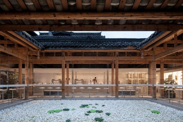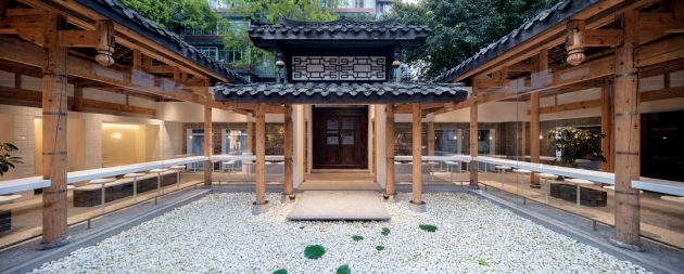 Encircling the water courtyard, the architects designed a looping indoor street with alternating wide and narrow passages, echoing the very character of Kuanzhai Alley.