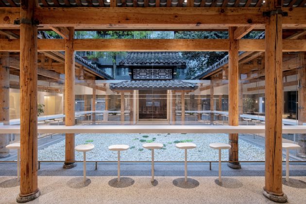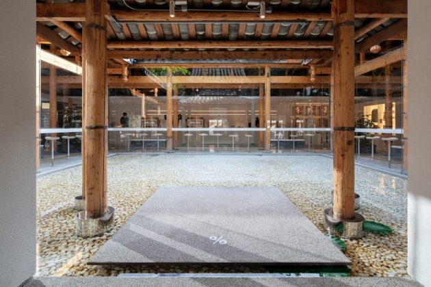 The guiding idea was to integrate the relaxed Chengdu spirit into the café while expressing the brand’s minimalism. Thus, the project became a dialogue between heritage and modernity, a re-creation of neighborhood life within the walls of a restored courtyard.