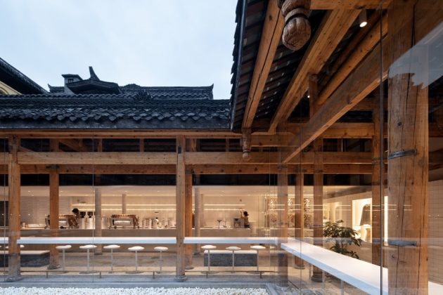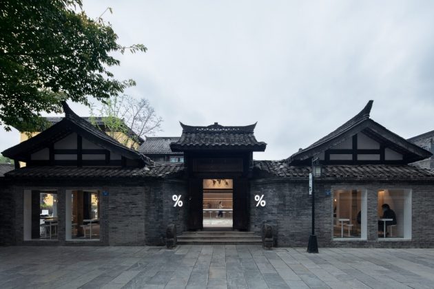 Chosen as the site for % Arabica Chengdu, the building faced Jing Alley, a relatively tranquil stretch in contrast to the bustle of Wide and Narrow Alleys. Here, B.L.U.E. Architecture Studio undertook the challenge of transforming the structure into a modern café while honoring its cultural roots.