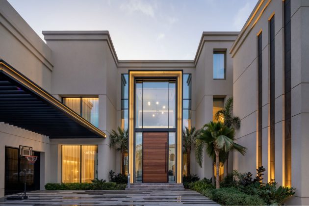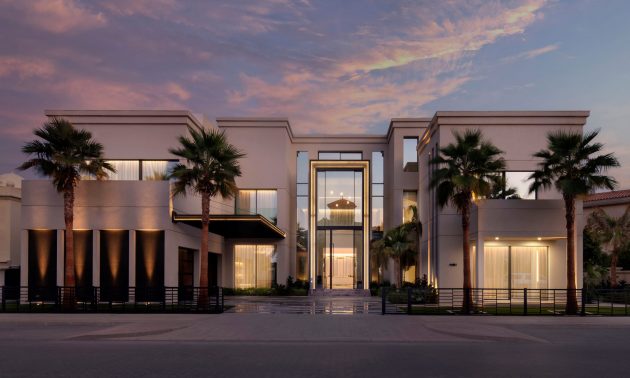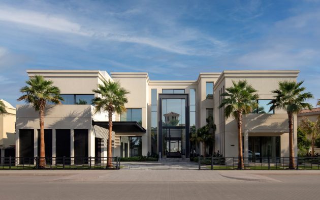 The client’s brief was to create a contemporary classical nine-bedroom family home that maximizes outdoor spaces and directs itself toward the views overlooking the beach facing the prestigious Dubai Marina.