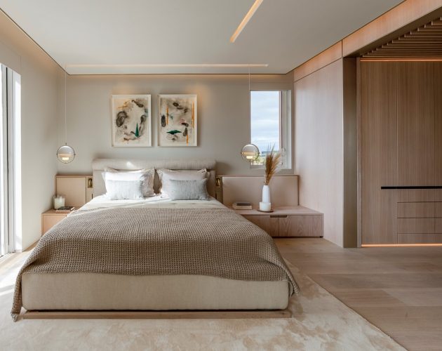 This restraint enables a gallery-like quality that allows the art full expression, while simultaneously remaining comfortable and liveable. The apartment might appear as an enclosed unit, complete in itself, but it remains open to its context, whether the sparkling lights of the marina and the yachts on the water, or the broader artistic identity of the precinct.