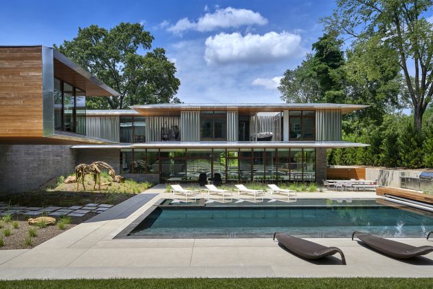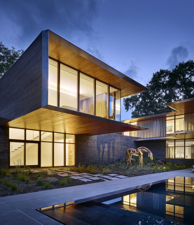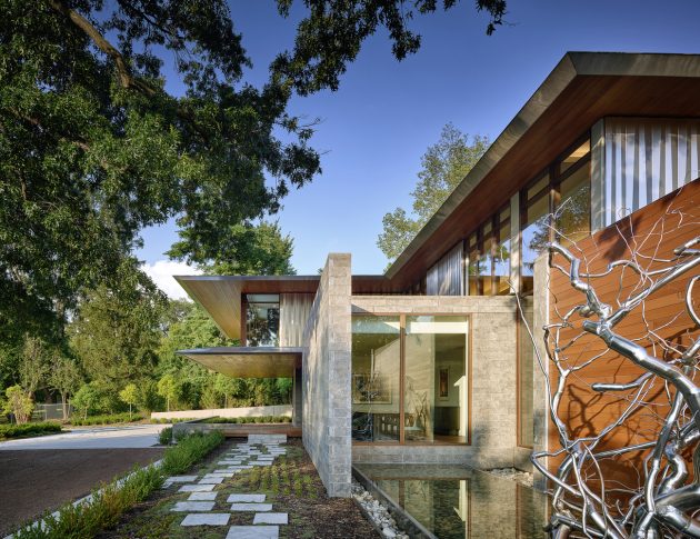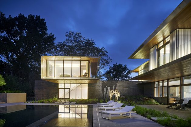 Kansas City is the home of the Artery Residence designed by the Missouri firm Hufft ProjectsThis two story contemporary abode boasts almost 11,000 square feet of living spaces, providing a family of established contemporary art collectors with plenty of space for their beloved pieces of art. In fact, there is an entire subterranean gallery dedicated to it.