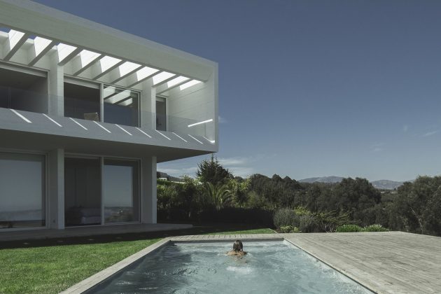 The highest point of the house lines up with the street level and the parking space. This way the view to the sea is not blocked. The house respect the horizontality of it’s environment that extends to each of its levels. This allows that the sea is at sight from inside of the house, as well as from the surrounding outdoor spaces.