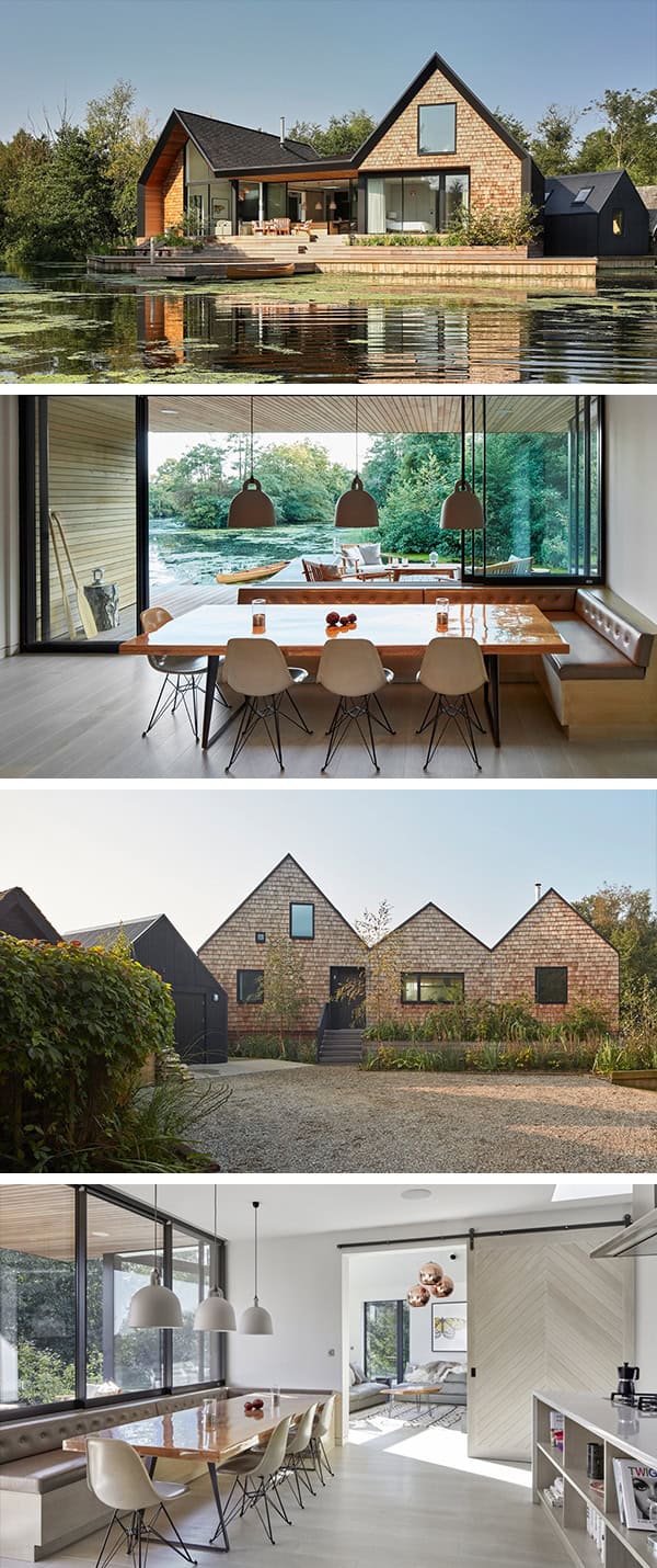 From the architects: “The house sits on a small promontory in a secluded lagoon in the Norfolk Broads and offers a contemporary counterpoint to more traditionally designed neighbouring houses, while respecting the peaceful natural setting.