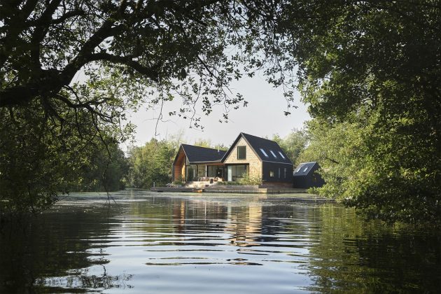 From the architects: “The house sits on a small promontory in a secluded lagoon in the Norfolk Broads and offers a contemporary counterpoint to more traditionally designed neighbouring houses, while respecting the peaceful natural setting.