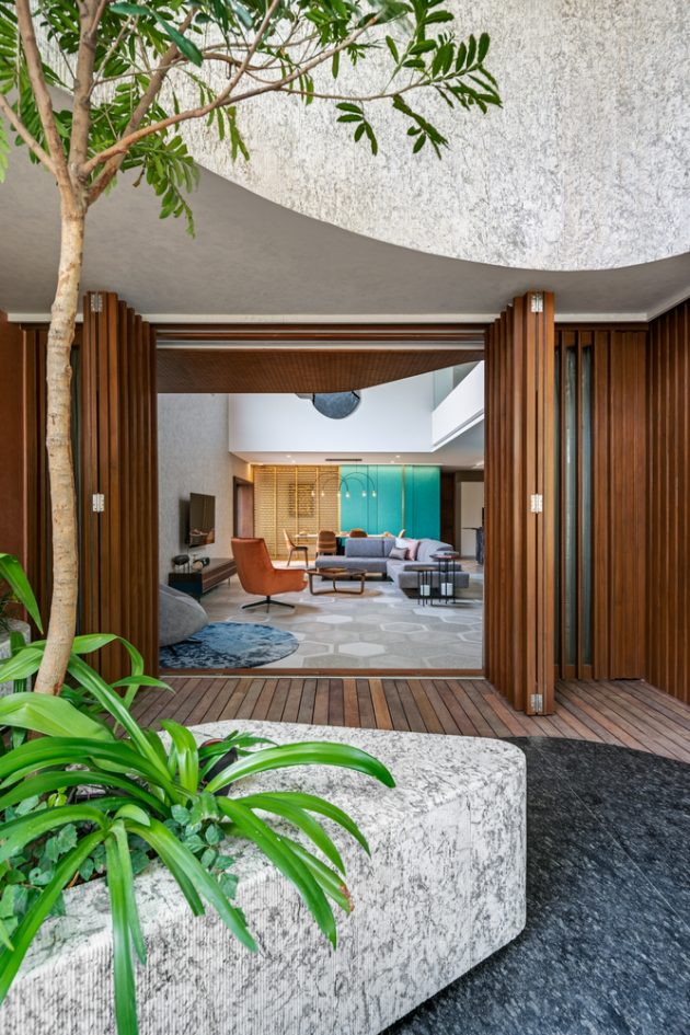 The Badari Residence is a luxurious modern home located in Bengaluru, India. It was designed by Cadence Architects and it offers 5,500 square feet of stunning living spaces. The amazing interior design is split into two types – intimate and communal areas, mostly done using open floor plans with a double height space. On the outside, the home stuns with an outstanding exterior design.