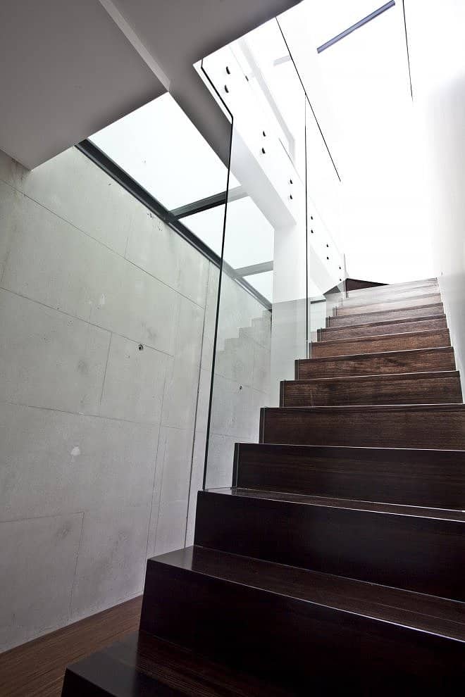 The tight sight presented the challenge to design around the restricting building envelope and maximise internal volume. This was achieved through implementation of double level height spaces and floor to ceiling glass at the rear of the building, creating an outdoor entertaining extension to the kitchen/ living space as well as high quality natural light throughout the residence.