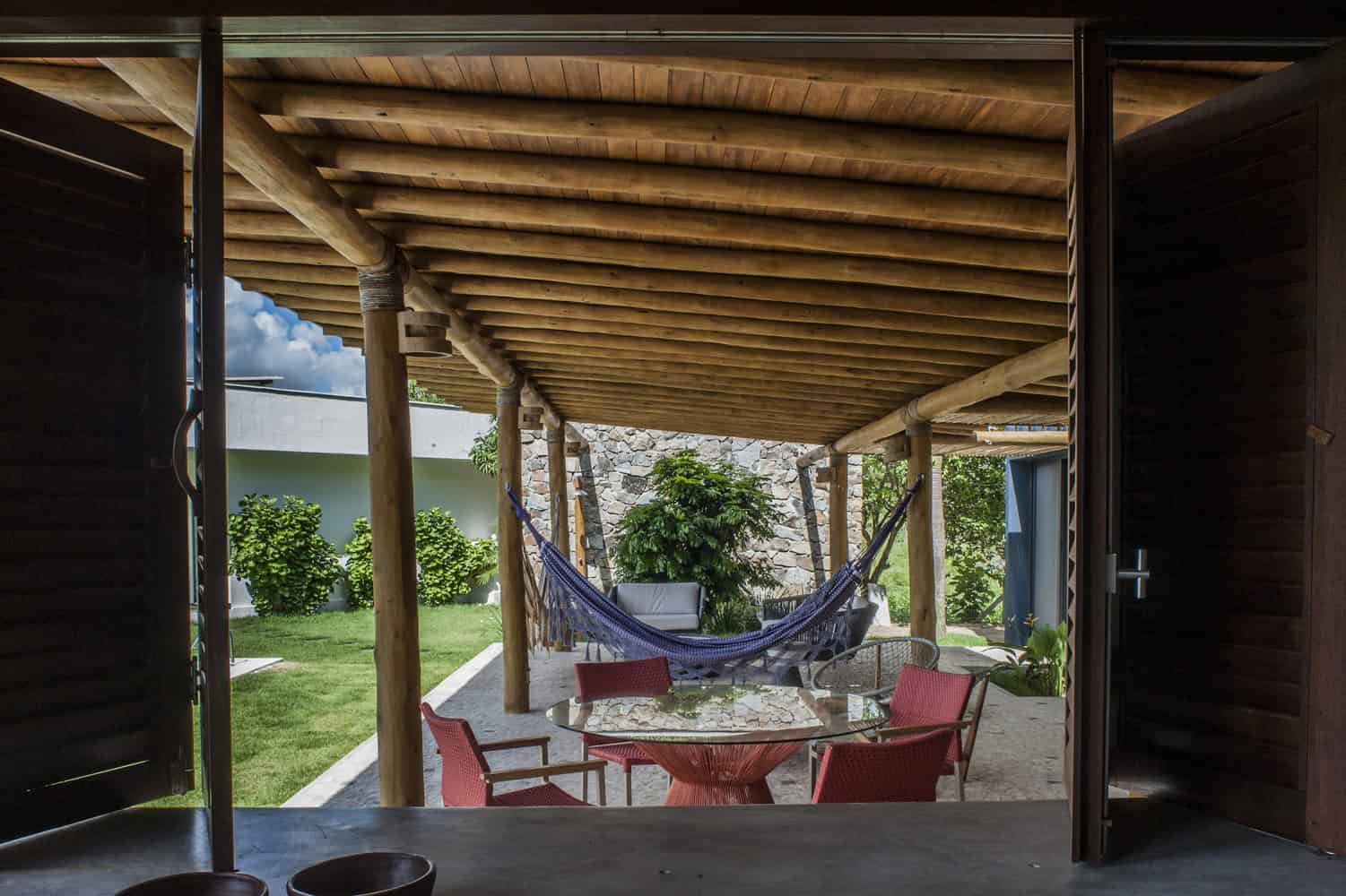 The house is oriented towards the prevailing winds which crosses the pool water and the vegetation of the gardens to penetrate the bedrooms, cooling the constant breeze and refreshing the interior from the strong tropical heat.