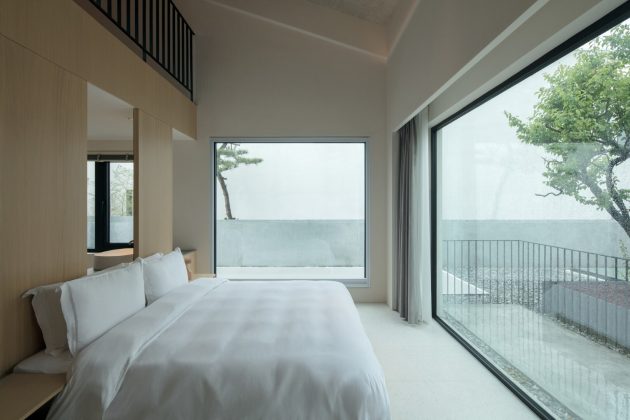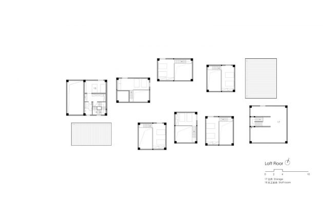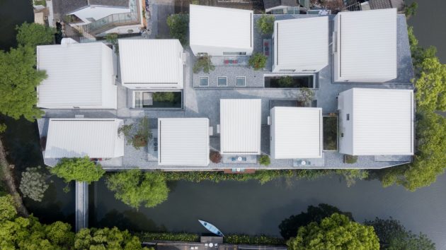 Upper Floor: The ten small boxes appear as a floating village beneath a unifying roof. Pebble-paved courtyards and open walkways link the rooms, while terraces extend living areas outdoors. From a distance, the ensemble resembles a contemporary interpretation of Jiangnan’s iconic water towns.