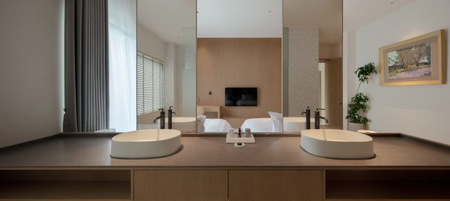 This material duality—earthy warmth below, serene purity above—embodies the dialogue between tradition and modern life.