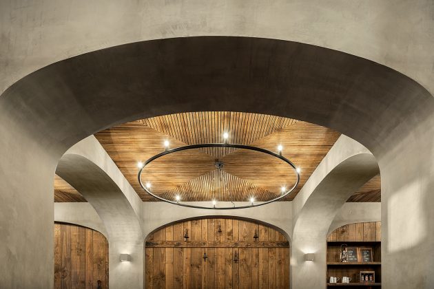 Taking into account the pre-existence of the site and taking advantage of a series of structural constraints, such as pillars and sanitation pipes, we created a logic of arched porticos that reinforce the idea of a winery.