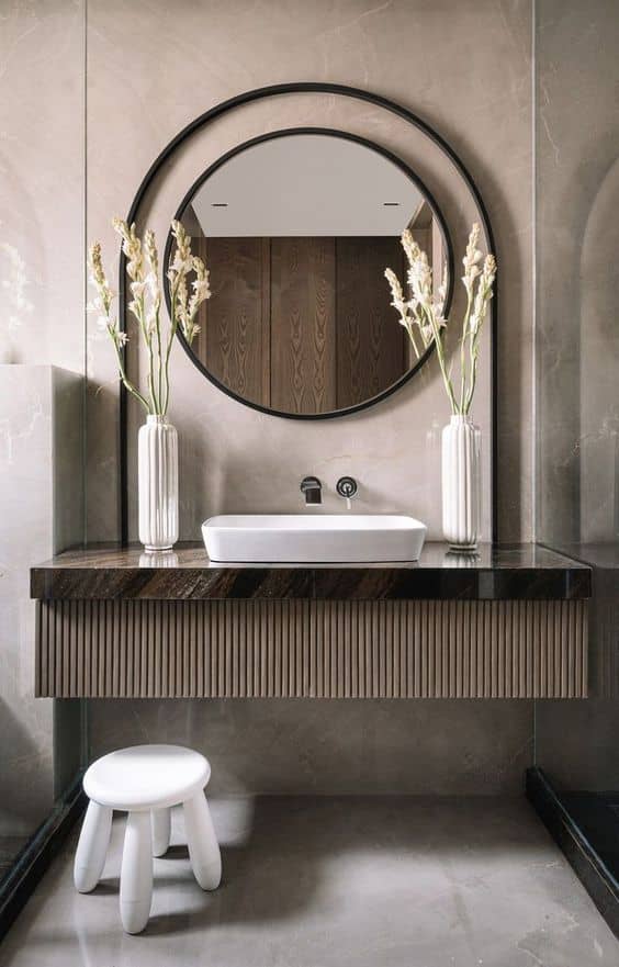 The most important of all these 4 items mentioned above is the harmony between them! They must complement each other, bringing balance and following the style proposal until the end. Modern style is what will determine all choices for bathroom design. The cool thing is to make a wall of references to see if the composition will be nice before starting the shopping and the work!