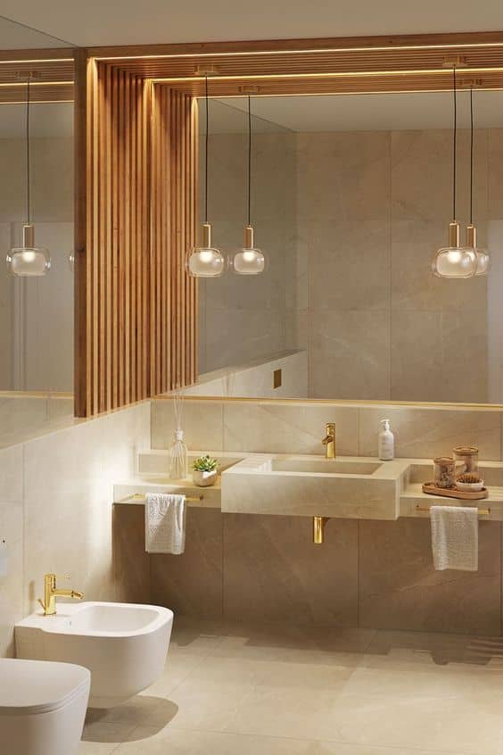Tiles say a lot about the bathroom, both for their design and for their functionality. The floor must be made of an efficient material to provide the necessary safety in this wet area. The glass in the box must be clear, without any texture or a different finish. Regarding mirrors, the larger they are, the greater the visual effect of a larger space. Ideally, they should cover a good part of the wall of the tub and the toilet, forming an end-to-end plan.