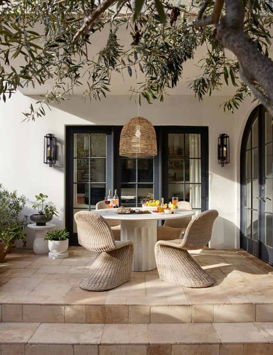 In the same spirit as natural fiber mirrors, ladders, and weaves, baskets with an artisanal look adorn the walls of terraces that are as bohemian as they are Mediterranean. For Provençal outdoor wall decoration, in the shape of a ball or rather flat, the basket brings a resolutely original note to the walls that are too white. Most? To decorate an exterior wall, think of strong enough hooks and hang ultra-decorative baskets on them, you can even store your garden accessories there.