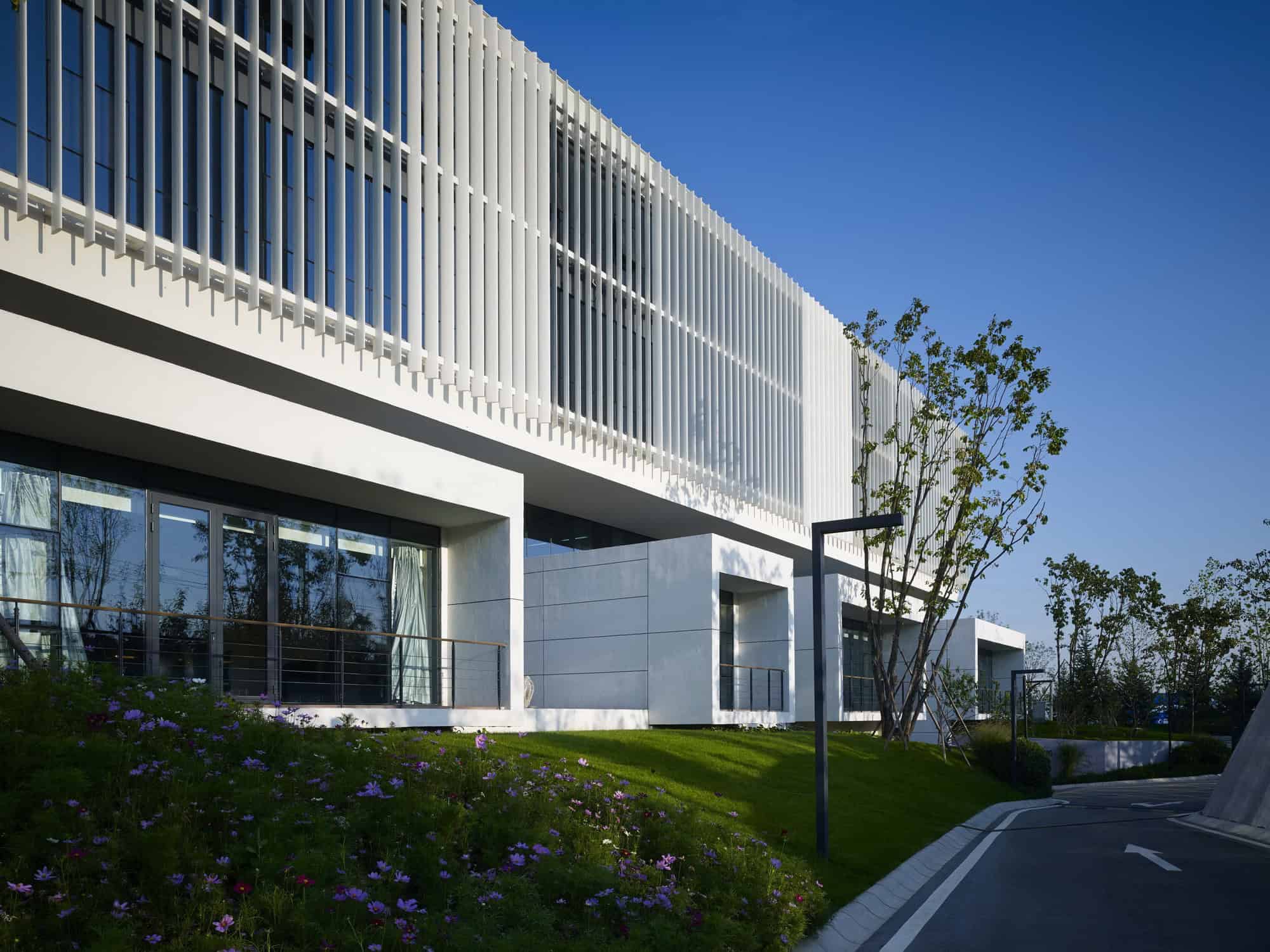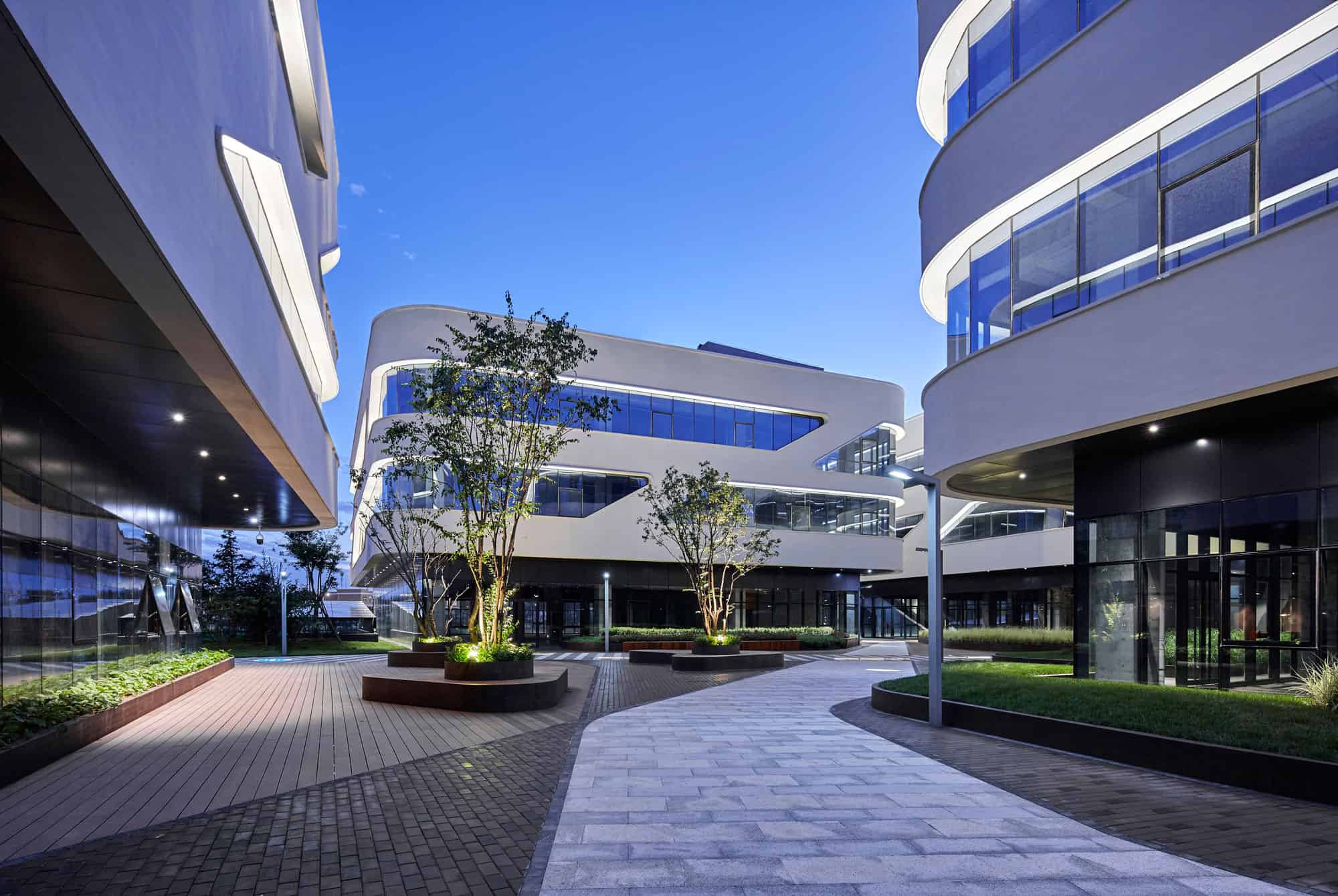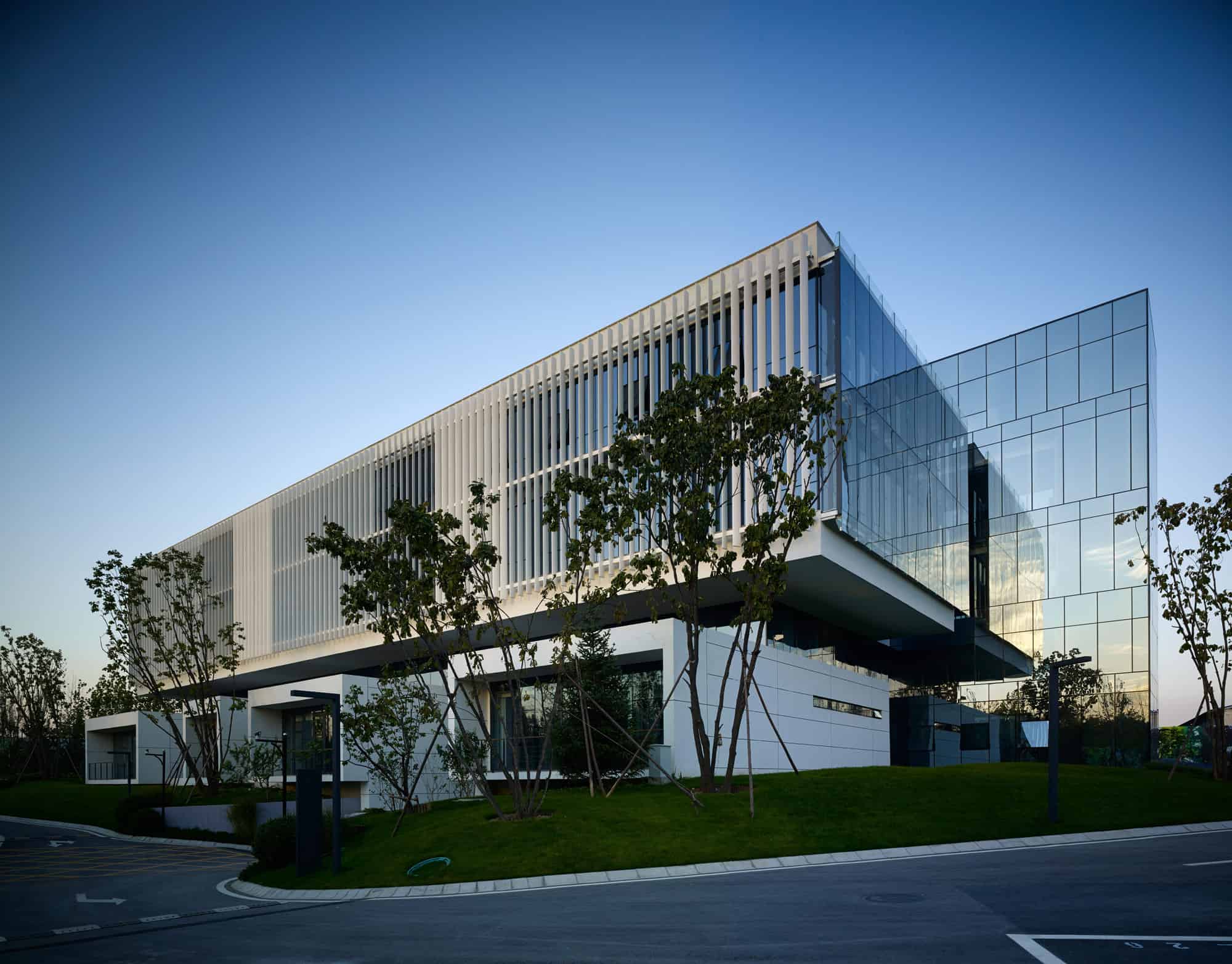 The construction area of the demonstration building is 11895m2, with 3 floors above ground and 1 underground floor. The office is a large-scale box, located on the second and third floors of the building. The first-floor space holds the office function in an orderly combination of eight functionally different small boxes, and the functions are organically combined through the atrium. Relying on the terrain, the building is connected to the surrounding environment through green slopes, making the building appear to be located above the park and become a green and energy-saving seed in the park. The grey space is combined with the atrium space, the terrace is combined with the roof garden, and the space is smart and exquisite. The white wall is lined with swaying trees and shines on sunny days. Respiratory curtains reflect the ever-changing light and shadow, showing different attractive colors in different days and times; the demonstration building consists of a number of independent functional unit boxes, each with its own personality.