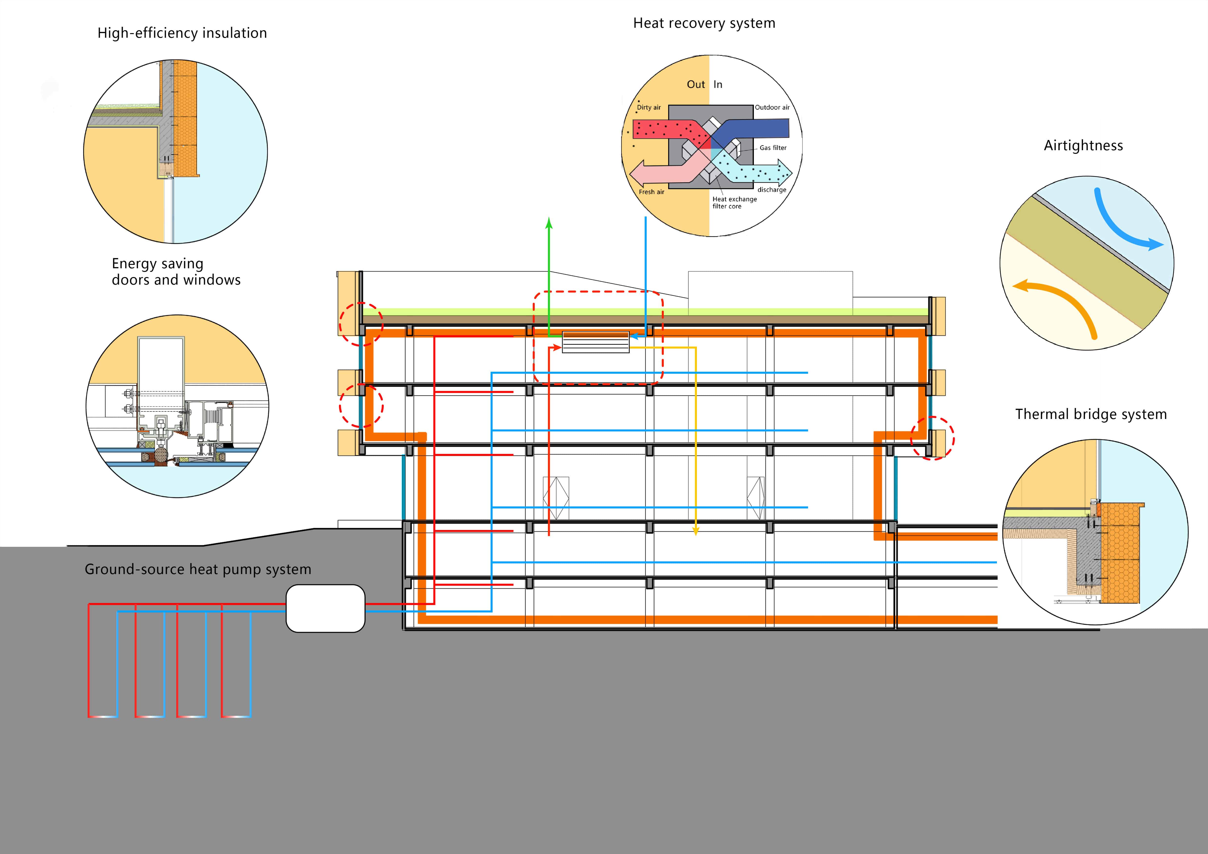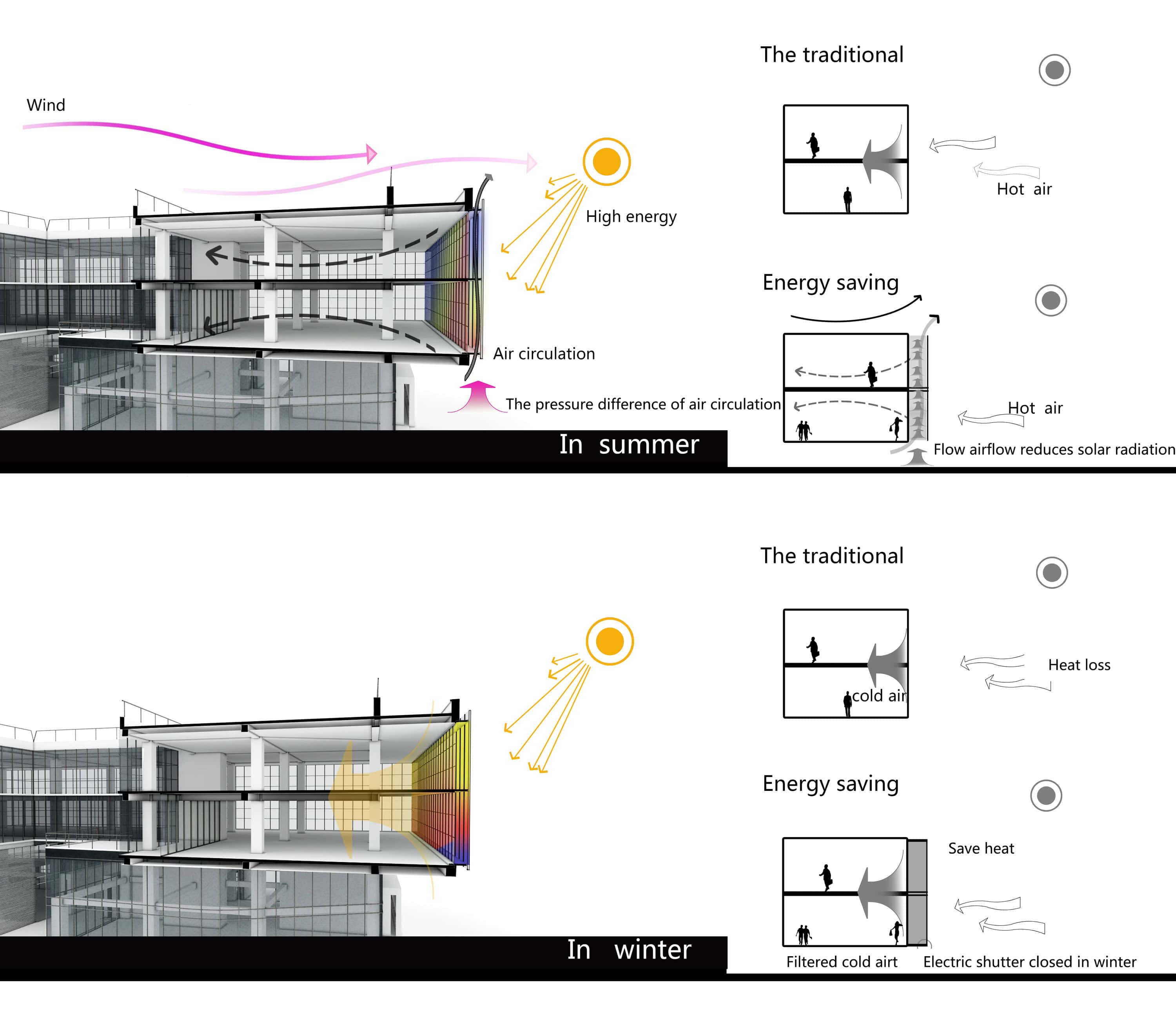 The Beijing Hongkun financial valley project has made different attempts and innovations in functional, spatial and five-sensory experience design, taking the construction itself as the most economical space energy saving device. To create a comfortable office environment through the rational use of energy saving technologies such as respiratory curtain walls, midcourt air flow guidance, electric baiye sunshade, geothermal pump and soil greening, which achieving a perfect combination of intelligent green building system with architectural design.