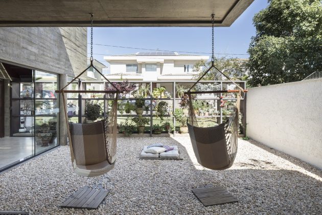 The Bentes House is a contemporary dwelling integrated with its landscaped outdoor spaces. Towards the street, privacy is maximized while on the backyard-facing side, the focus is on indoor-outdoor living. It was designed by CoDA Arquitetos, the studio behind the design of the 11 House in Brasilia that was showcased on our site a while back.
