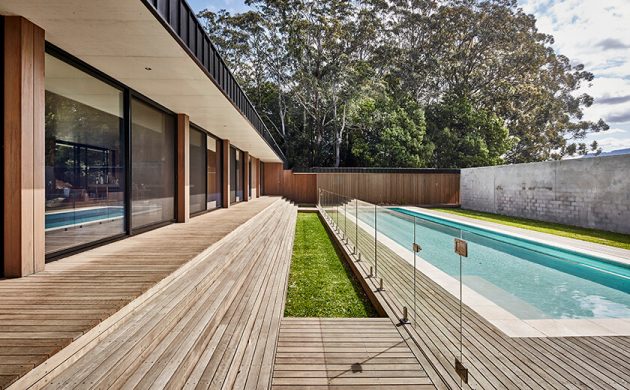 The finishes palette is minimal and modest with timber, concrete and zinc used in an uncomplicated manner create a design that is humble and nondescript. All landscaping, including the pool, was also coordinated by Modscape.
