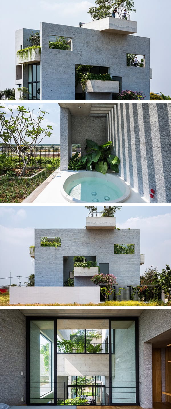 The Binh House demonstrates an approach where tropical gardens, open spaces and water are integrated within a high density neighborhood. It is a part of VTN Architects’s House for Trees series and it is located in the city of Ho Chi Minh in Vietnam. This 2,500 sq ft contemporary home is occupied by a family of three generations so establishing a home that will give each inhabitant their own space while still encouraging interaction was quite a challenge for the architects.
