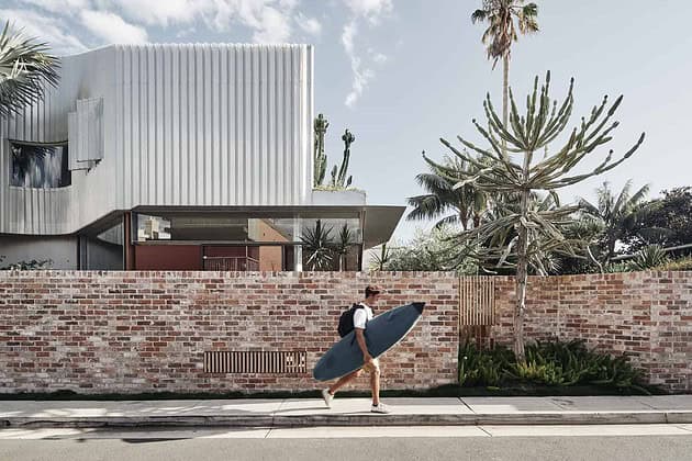William Dangar (landscape architect/client), brought Andrew Burges Architects, David Harrison & Karen McCartney (interior), and Robert Plumb Build together at the onset of the project. The material palette was honed through close collaboration between all, and with key trades: The pleated screen sits off an insulated, standard colorbond sheet wall, prototyped with the roofer to test window integration and transparency.