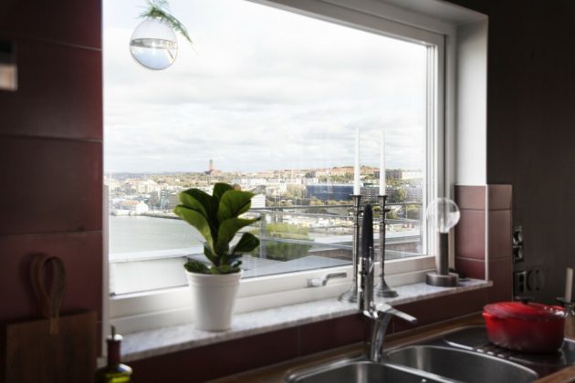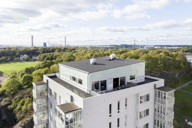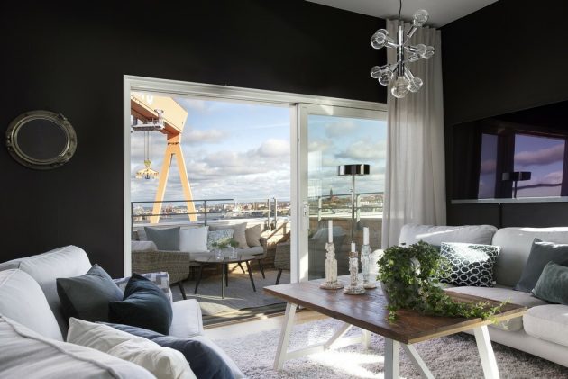 And the third thing, the exterior, if the living room leaves us a little surprised with that ideal combination of black, white, and wood, the exterior hallucinates us even more, with that terrace that practically surrounds the attic and those views of the Swedish city.