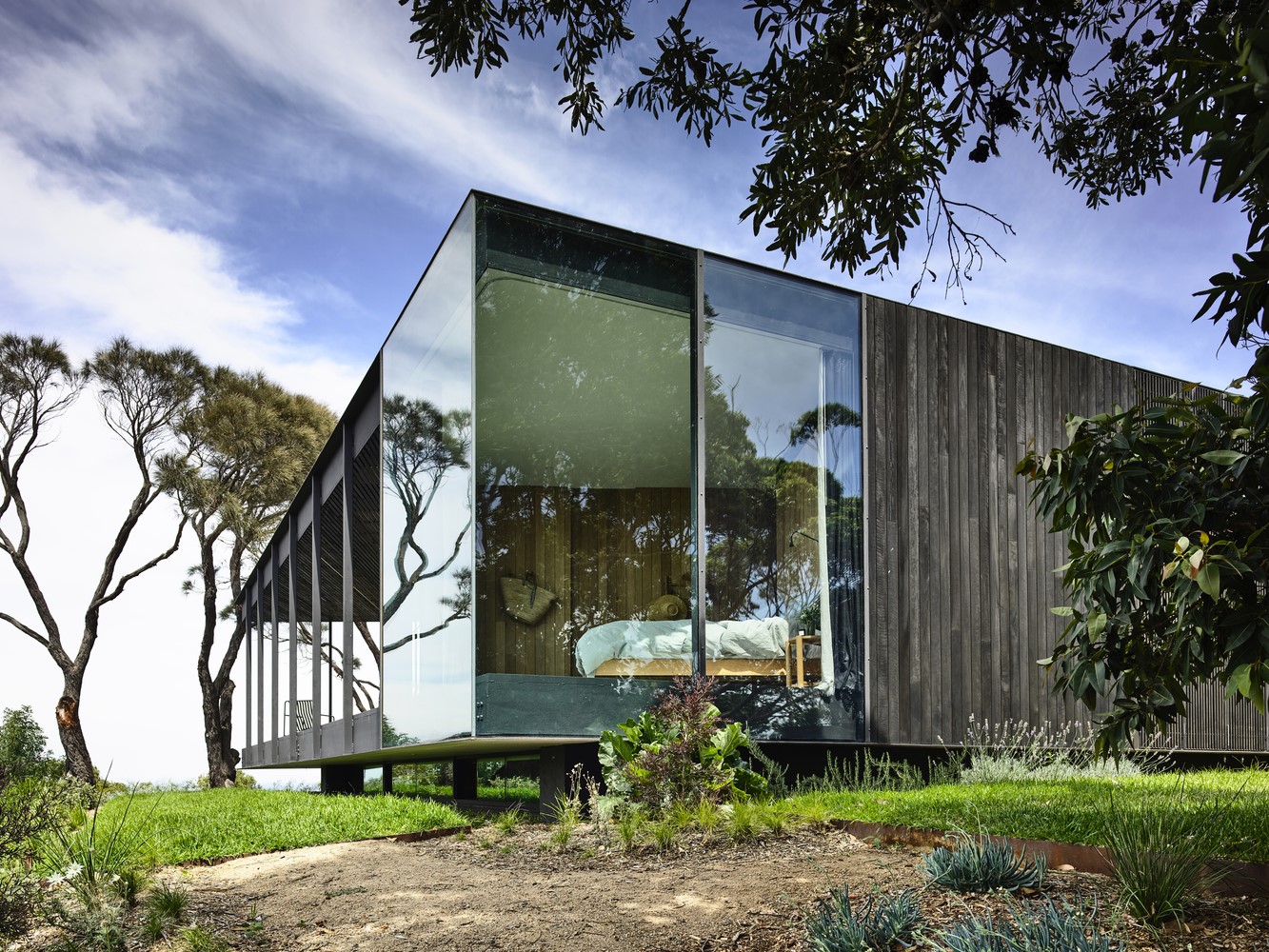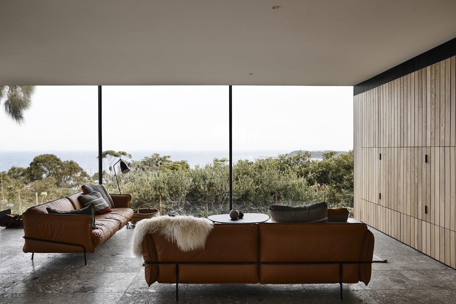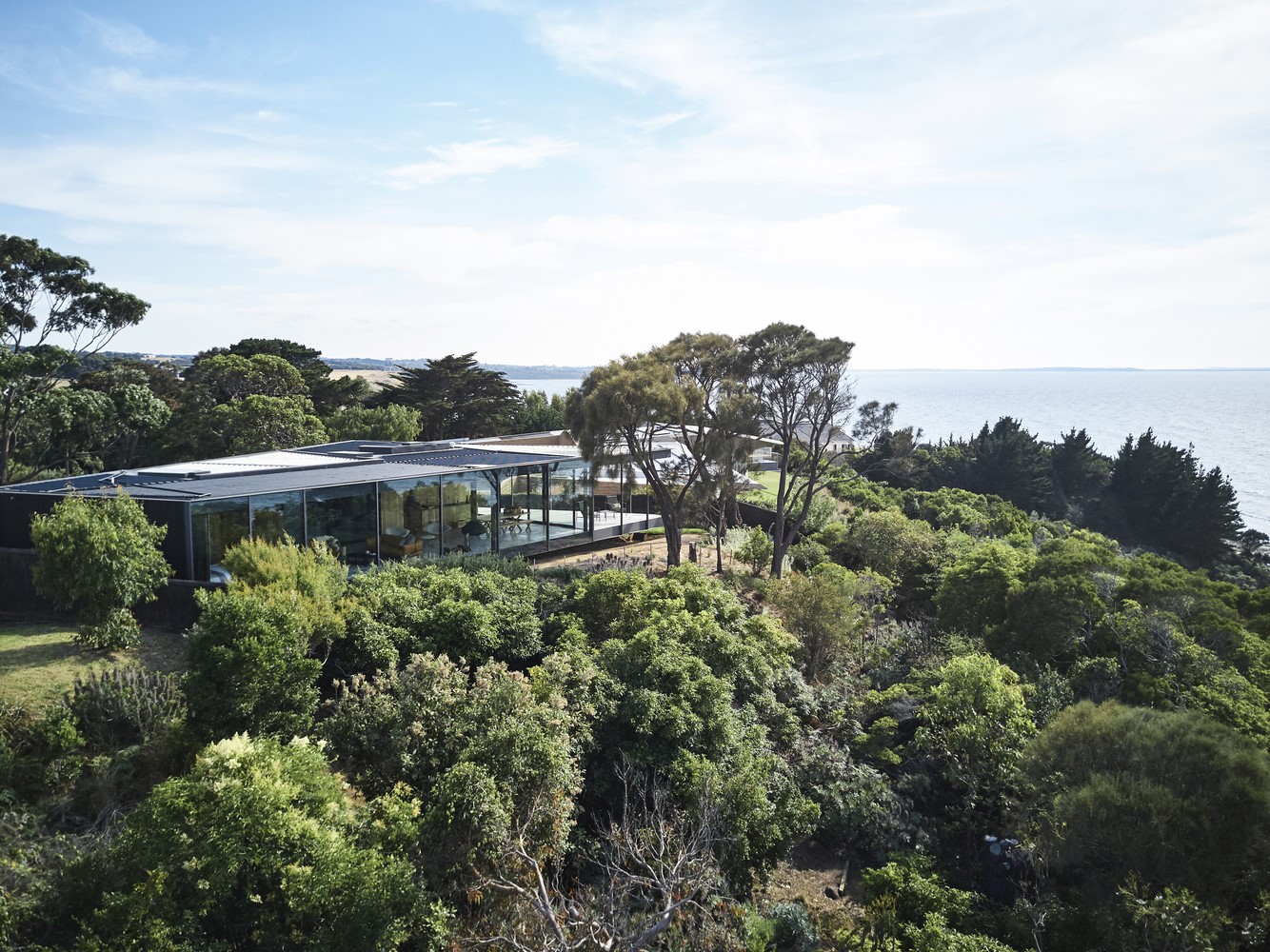 On the Flinders bluff, this full-time, dual ownership coastal home sits as an object in the landscape, co-existing but not integrating, compelling but not dominating. The house evokes a sense of transparency and purity while also providing protection from the coastal environment.