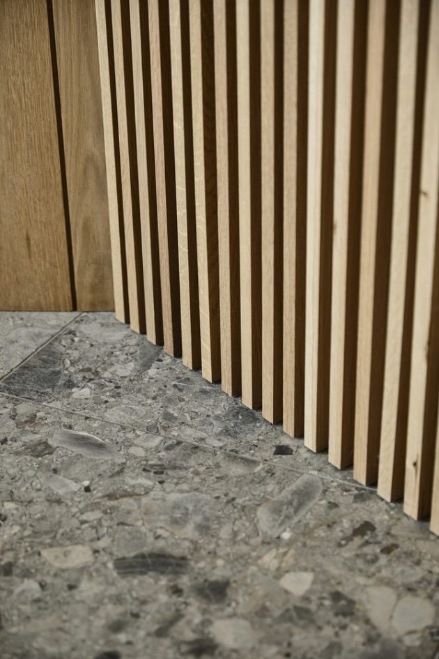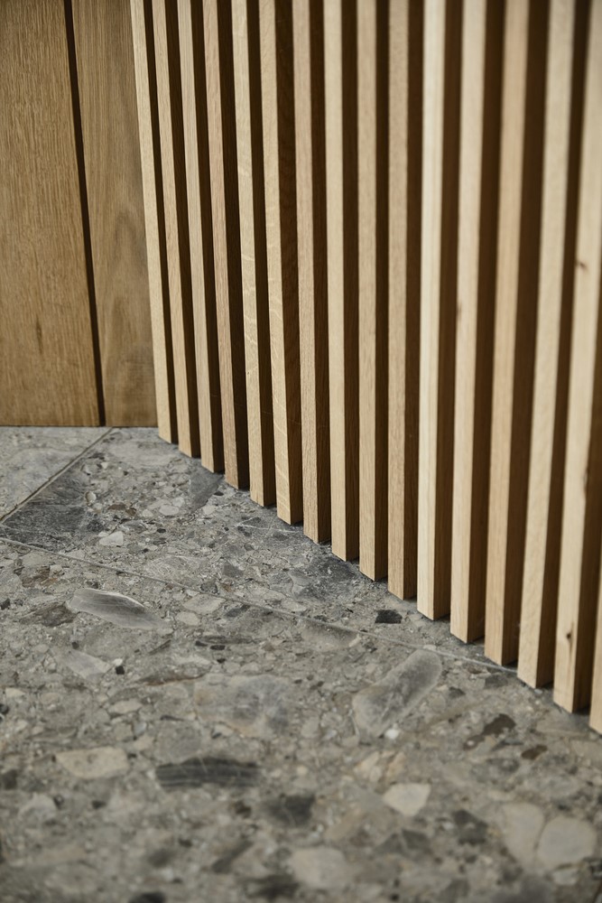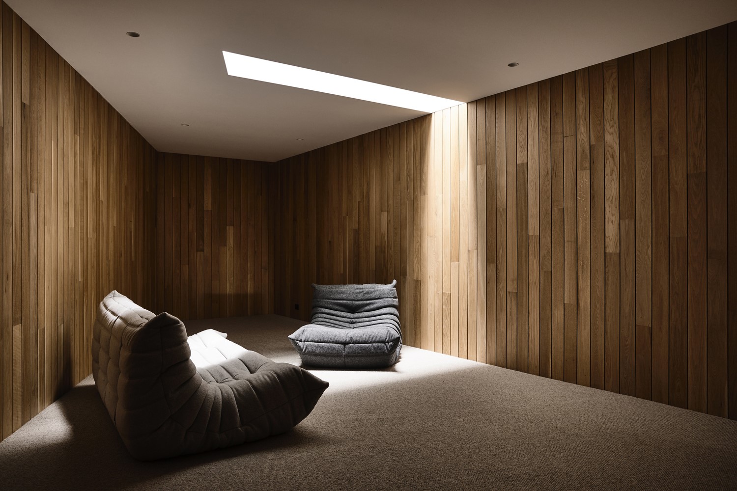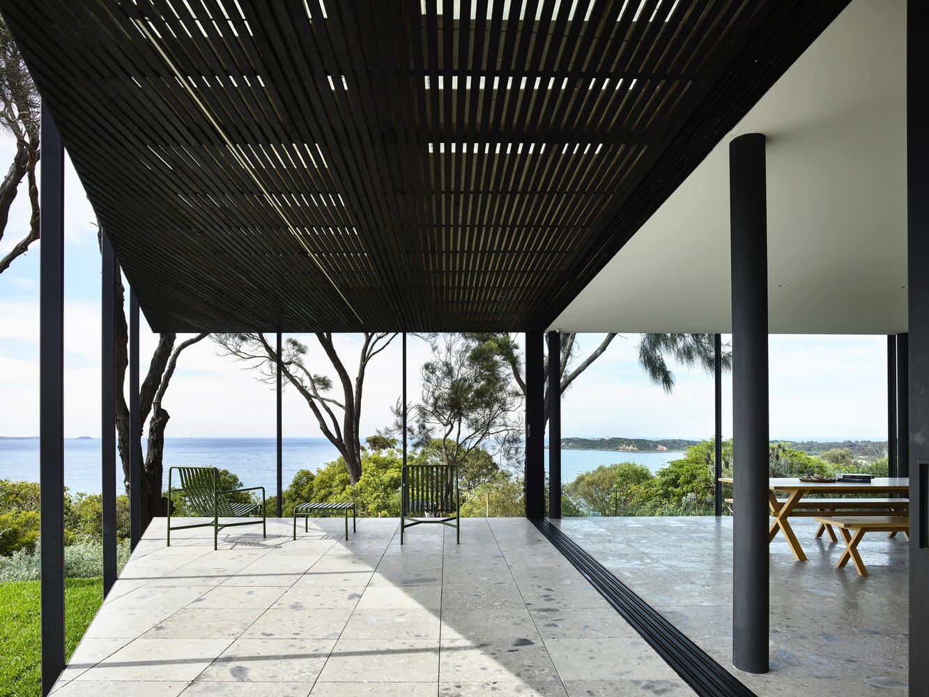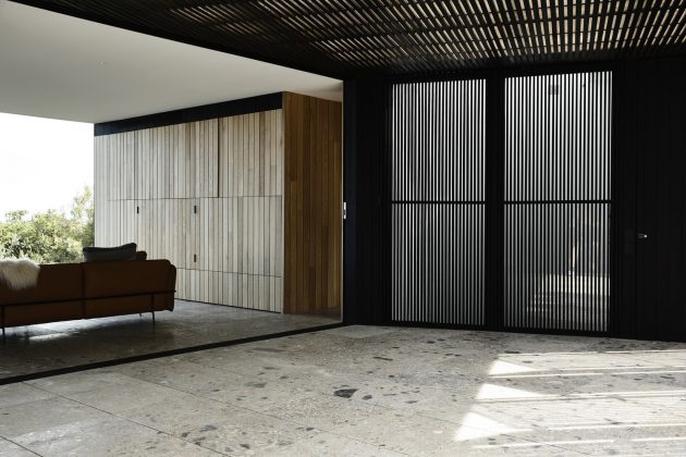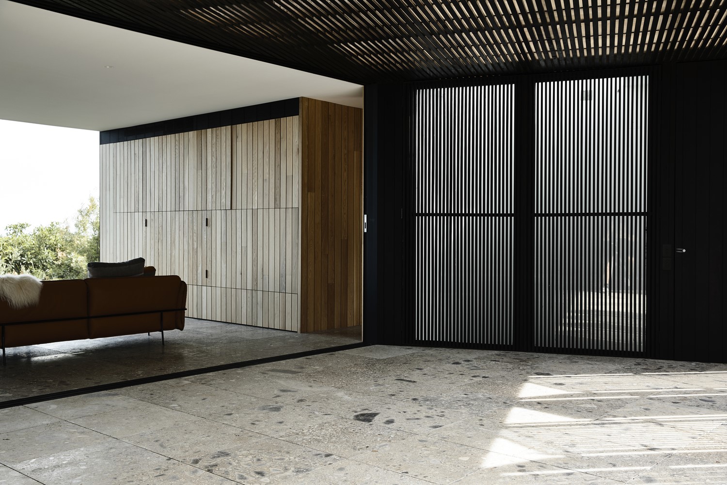 Throughout the house there is a continuous theme of concealment, joinery and doors have been detailed in such a way that are integrated into the walls. These read as continuous planes dividing the platform accentuating the view and hiding the record of daily life. A series of shutters and screens throughout the house filter light to control desired spatial qualities. Shafts of light pierce the plan to bring natural ventilation and light deep into the house.