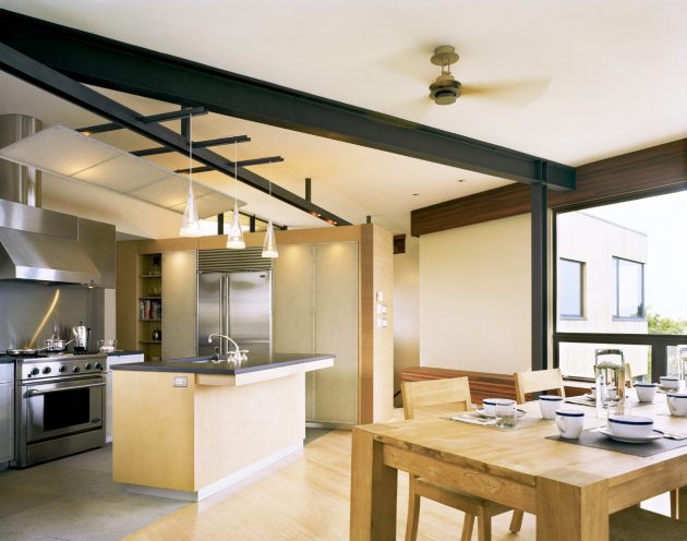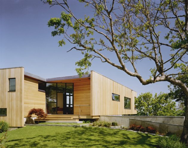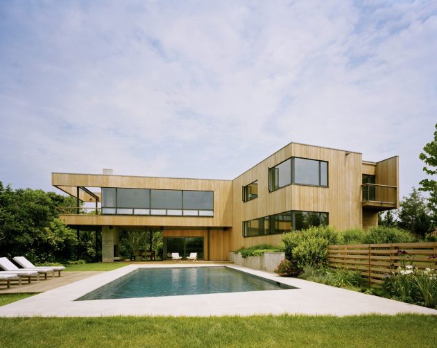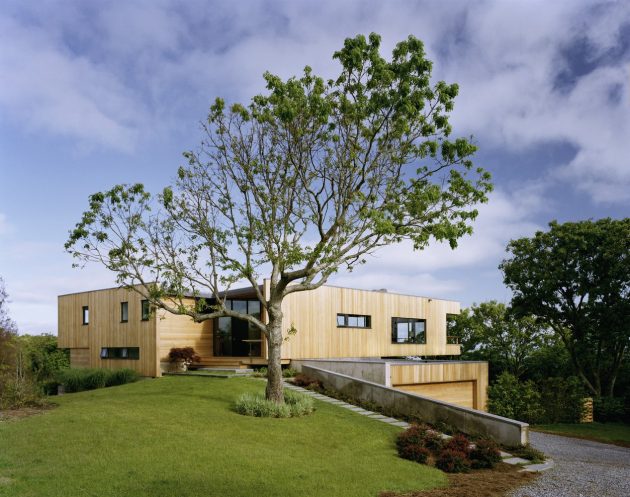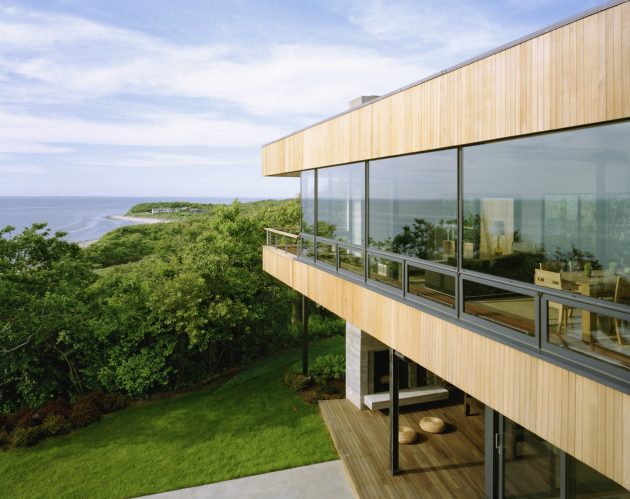 Robert Young has completed the Bluff House in Montauk, New York. This beautiful modern dwelling is overlooking Block Island Sound and is surrounded by lush greenery, a common theme in the designs of this studio, for example, the Kettle House project in Wainscott or the Mitchell Lane House project in Bridgehampton.