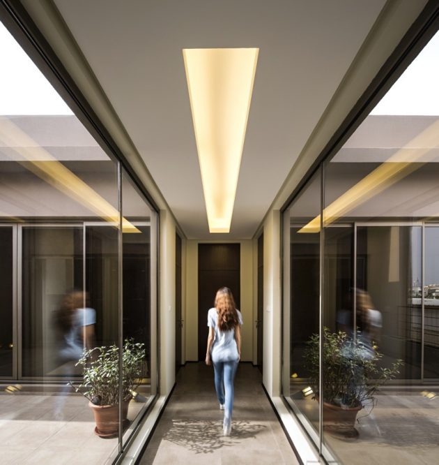 Massive Order has designed a beautiful contemporary dwelling for three families in Rawoda, Kuwait. The Box House I has almost 6,500 square feet of living spaces behind a smooth stone facade. It is carved up into three separate homes that all come together around small terraces.