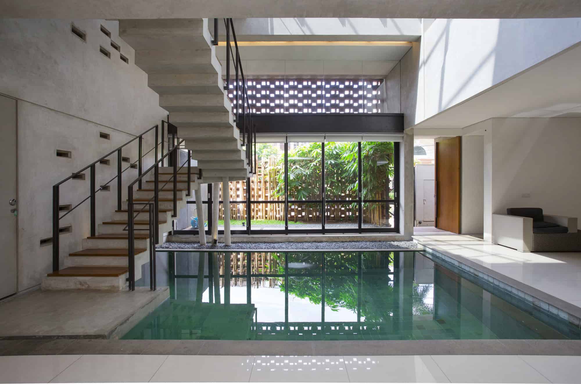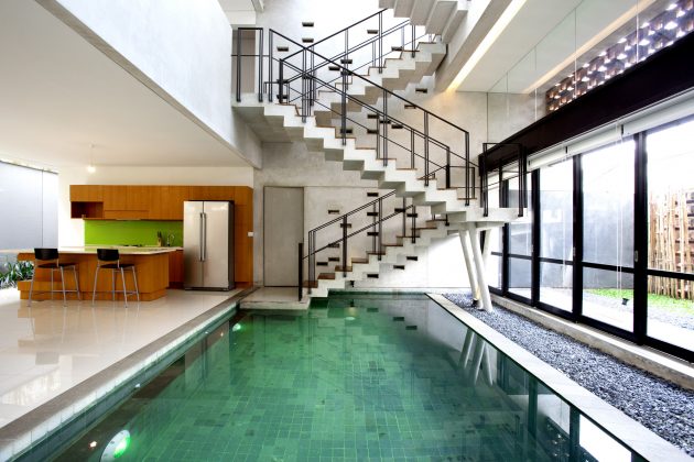 Atelier Riri have designed the Breathing House in Serpong, Indonesia. This luxurious modern home offers a bit under 3,500 square feet of living space in an area with tropical climate. The home has been designed with that in mind and it also makes sure to incorporate lush landscaping into its outdoors design.