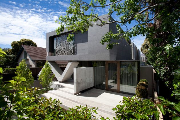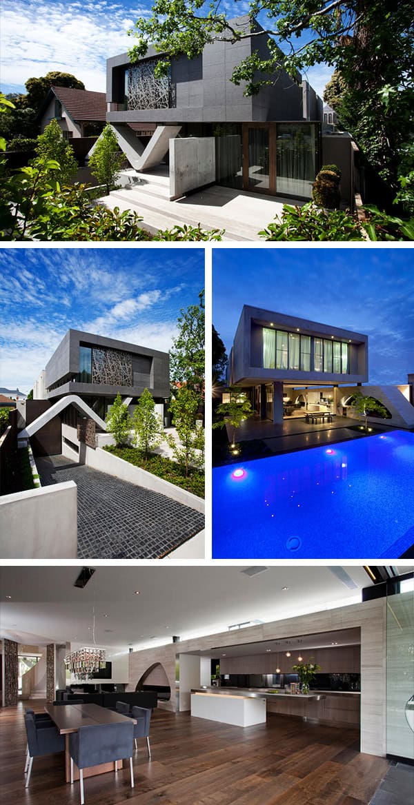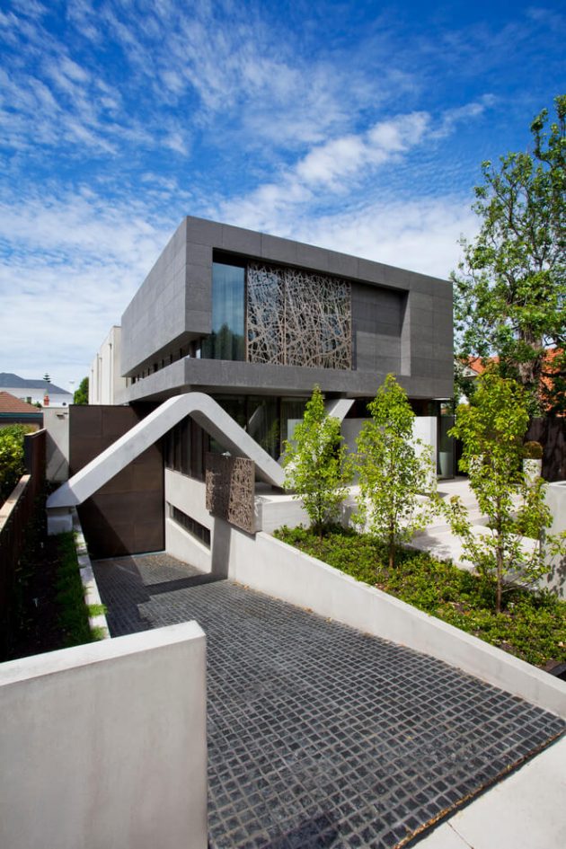 The street on which it is placed comprises of traditional homes and recent replica house residences while the geometric forms of the Brighton House are bold and unprecedented in this surrounding. It looks like a contemporary home with a sculptural edge and that separates it from the rest of the houses on the street.