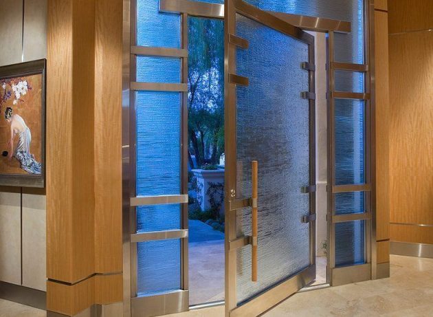 Glass doors for entry are used in specific cases, mainly in corporate offices and commercial buildings. The use in homes is still limited, but it can be a good option for those who want to dare to use the material. You can also use a film or choose a glass with a more matte feature to not leave the interior of the residence transparent to the outside. Many models are combined with wood or aluminum as a frame.