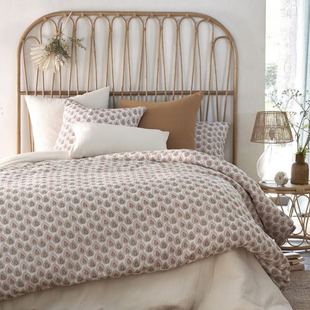 • Cane and rattan furniture is also very interesting to work with, even in small quantities. In the bedroom, it is easy to fit a rattan headboard or even a Papasan in the corner of a room.