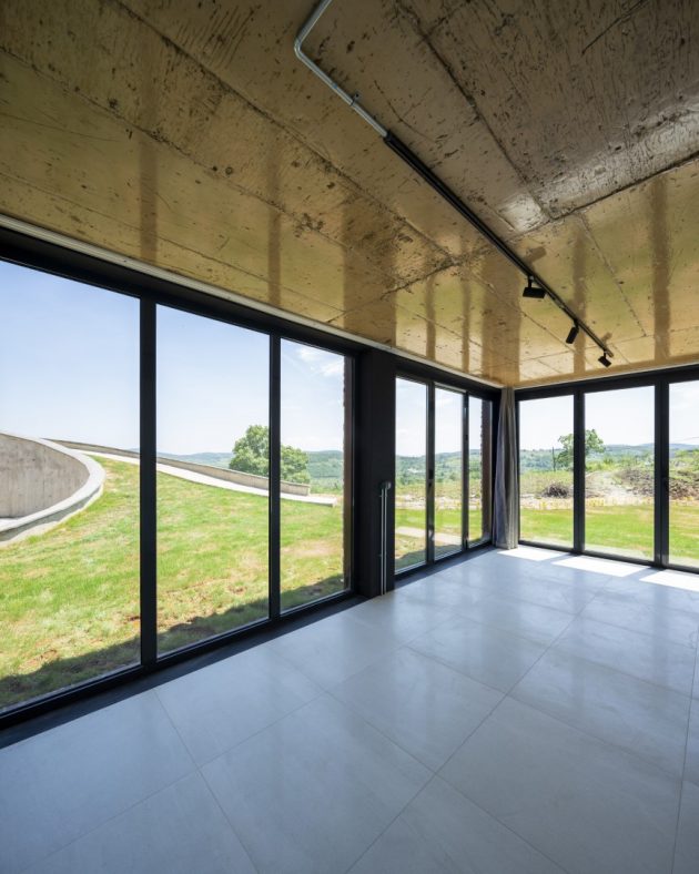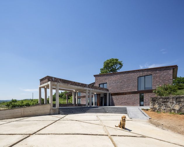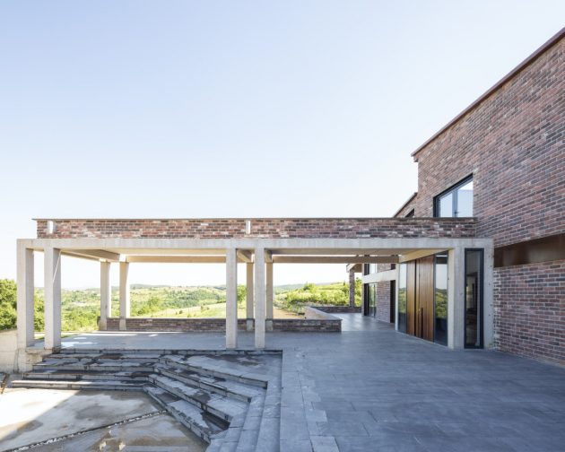 The house is characterized with the diversity of the materials used throughout the house such as granite, concrete, brick, rusted Corten metal, metal, tick, oak, aluminum and glass.