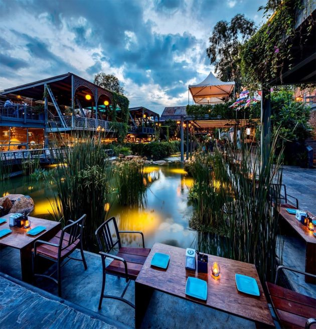 A large pool in the centre of the pub complex along with mini waterfalls helps mitigate the heat during the summers and perfectly divides the establishment into two parts which was necessary due to the massive size.