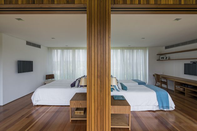 CA House by Jacobsen Arquitetura is a masterful exercise in geometric subtlety, site responsiveness, and material finesse. Through Z-shaped planning, angled volumes, and expressive shading systems, the project negotiates terrain, light, privacy, and landscape with quiet authority.