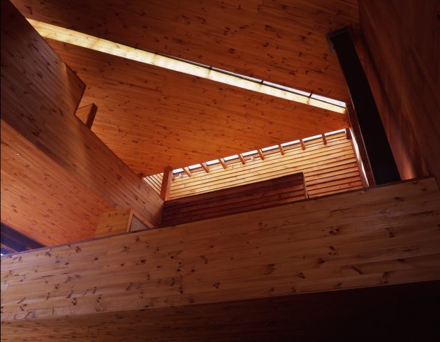 From the architects: ” The purpose of this house is to build a family gathering place that could host during one month up to eight families concurrently or receive a single person alone in winter.