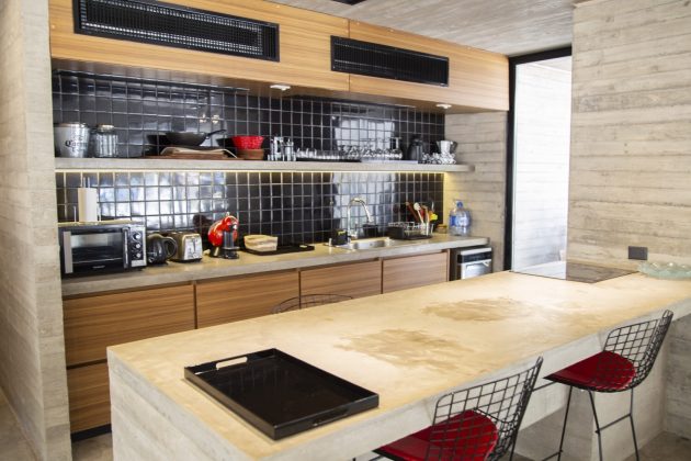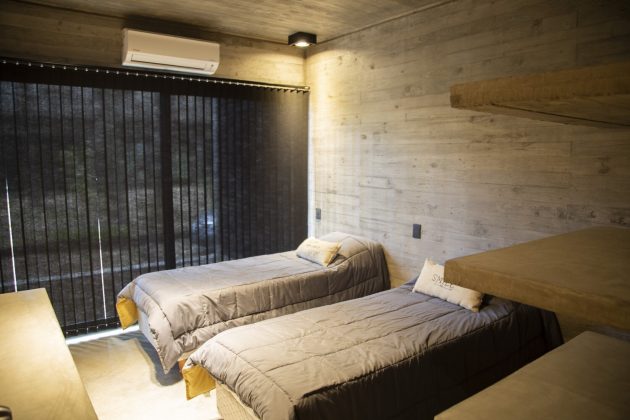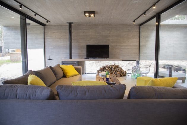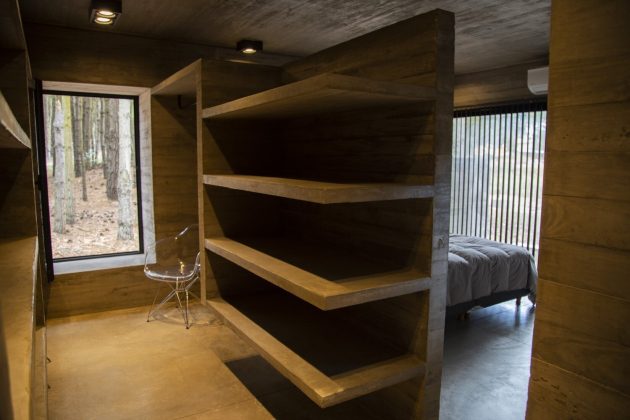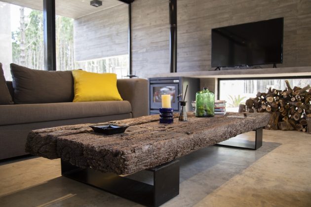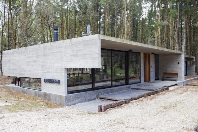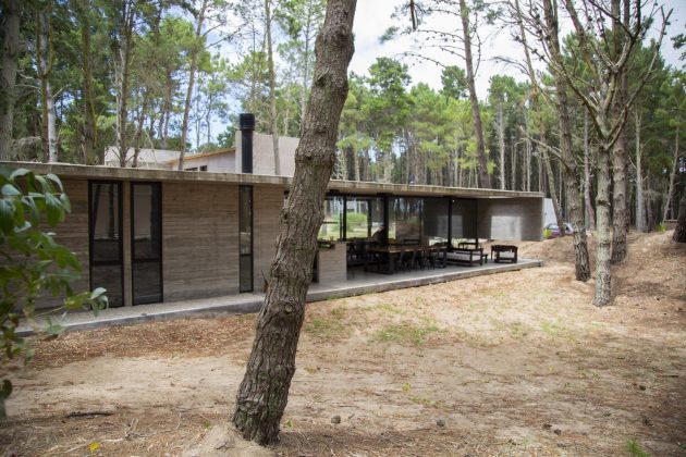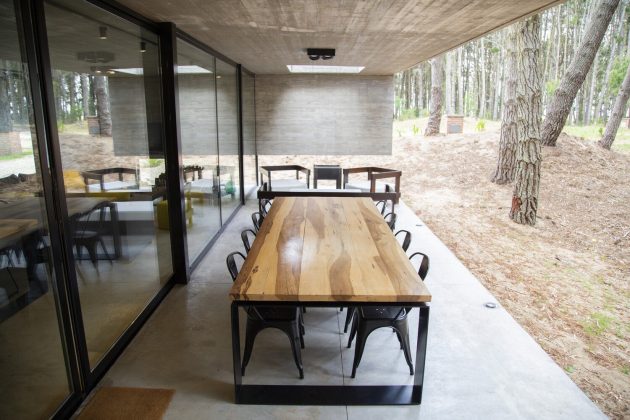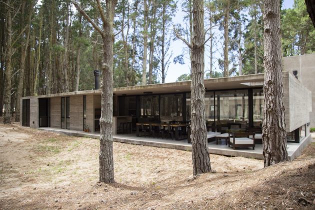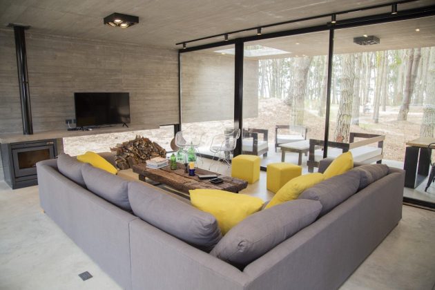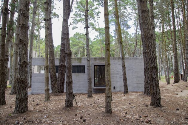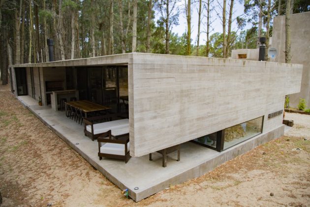 The Castignani House is a wonderful contemporary dwelling placed amidst a pine forest in Argentina. It was designed by Ebeca with a simple goal in mind – to make the residence integrate harmoniously with the surrounding pine forest. That is why it is a monolithic piece of concrete with a single level and plenty of opening areas that connect to the outdoors.
