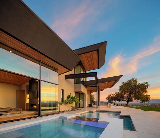 Paradise Valley, Arizona is home to yet another spectacular luxurious residence designed by Kendle Design Collaborative. First, we showcased their Ironwood Estate Remodel project and now they’re back with a fresh one – the Cholla Vista Hillside Residence. It is an amazing contemporary residence that revolves around delivering the most stunning view of the expansive city skyline and mountain landscapes at any given time. Its interior expands seamlessly towards the superb outdoor areas that are connected to the bedazzling nature, shadowed by the Camelback Mountain.