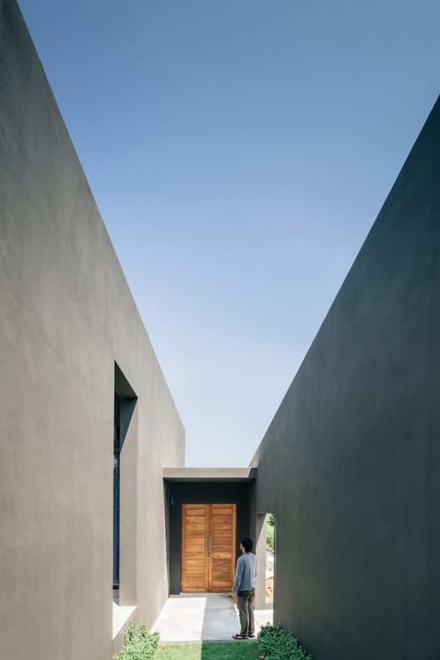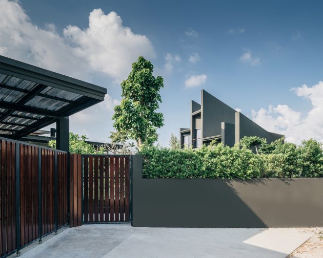In a neighborhood packed with quarries and highways, three dramatic planes keep things cool and quiet for a family of five in this Anghin Architecture-designed house. The Chonburi Sila House is located in Thailand’s Chonburi province, a heavily industrialized area dubbed the Detroit of Asia. This particular house’s neighborhood is a jumble of factories, warehouses, and eight-lane highways. The environment is loud, dusty and not all that pretty.