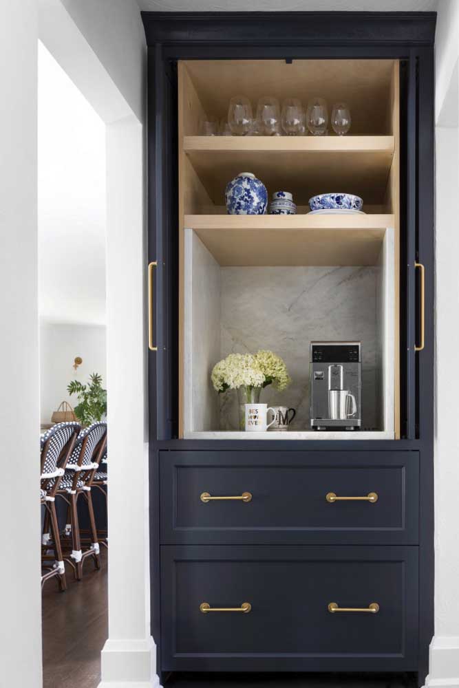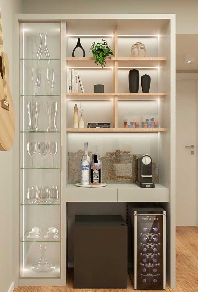 The coffee corner is very versatile and maybe that’s why it has been so successful. It can be mounted on a sideboard, a buffet, a cart (super trend), or even in a corner of the rack, dining table, or counter that divides the environment.